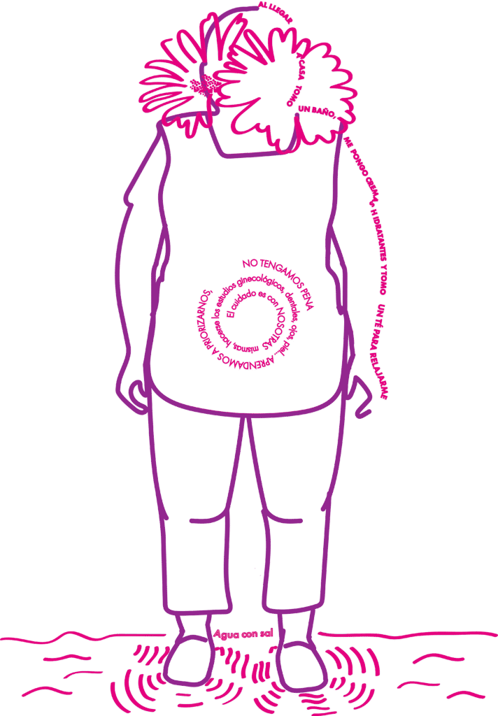Con este artefacto hemos mapeado sus y nuestras cuerpas, sus y nuestros estar-siendo desde el cuidado y el autocuidado. También hemos logrado llegar al espacio en donde nos preguntamos qué podemos hacer juntas para fortalecer el cuidado.